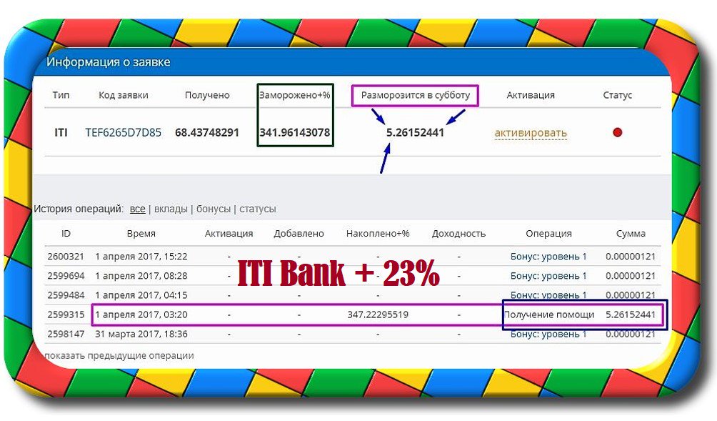 ● Всё просто: вносишь 10 iti каждые 24-48 часов и получаешь на 1 месте всё, что накопил (принцип копилки) плюс %%.